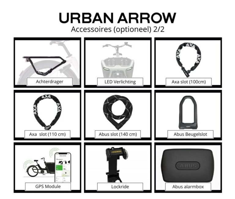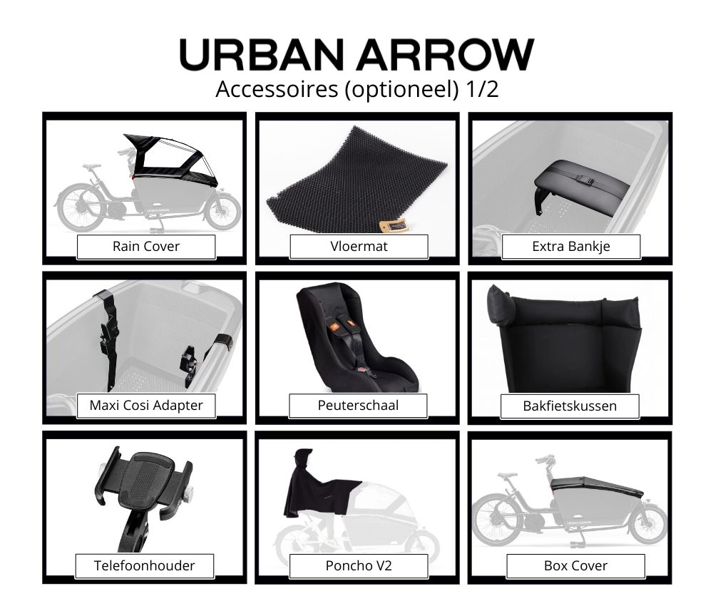 Kies bij aankoop van een Urban Arrow FamilyNext Advanced voor het accessoire actiepakket (t.w.v. €487,95) voor slechts €300!